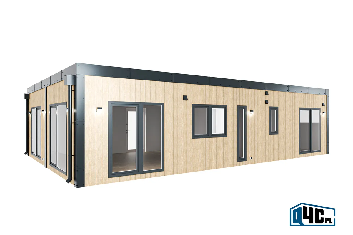 Domek BARCELONA to przestronny, dwumodułowy dom o nowoczesnym, minimalistycznym designie. Oferuje imponującą powierzchnię użytkową ponad 80 m², co sprawia, że jest idealnym rozwiązaniem dla osób poszukujących przestrzeni i komfortu w kompaktowej formie.